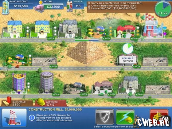 Перед Вами финальная версия новой, стратегической бизнес-игры, где Вы поведете свою строительную корпорацию к победам в отельном бизнесе. Базовые принципы такие же как в игре «Построй-ка»: Вы будете возводить отели, коммерческую недвижимость и технические здания.