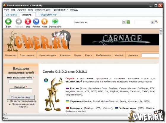 Download Accelerator Plus - менеджер закачек, позволяющей ускорить процесс скачивания файлов из интернета. Поддерживается одновременная загрузка с нескольких серверов, докачка после разрыва соединения, автовыключение компьютера после завершения сеанса работы. Утилита имеет встроенные средства поиска файлов на серверах. Менеджер хорошо интегрируется с браузерами, поддерживает работу через прокси и т.д. Имеется русский интерфейс.