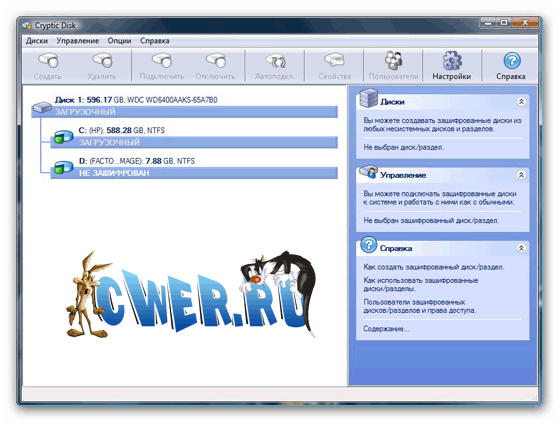 Cryptic Disk - создание и управление зашифрованными дисками и разделами. При записи на зашифрованный диск или раздел данные автоматически шифруются, в дальнейшем хранятся в зашифрованном виде и для посторонних недоступны. При чтении с зашифрованного диска или раздела данные автоматически расшифровываются.