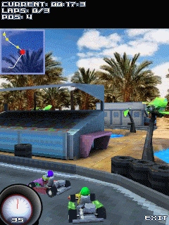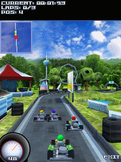 Превосходная 3D-игра на картодроме. Убедитесь, что Вы лучший! Вы можете соревноваться в различных обстановках: пустыня, луна-парк, город. Вас ждут 12 треков различной степени сложности и 3 режима игры: схватка, чемпионат и езда на время. Благодаря Интернет-серверу результатов WWW, Вы можете состязаться с участниками со всего мира. Присоединяйтесь к глобальному соперничеству! Размеры экранов: 240x320.