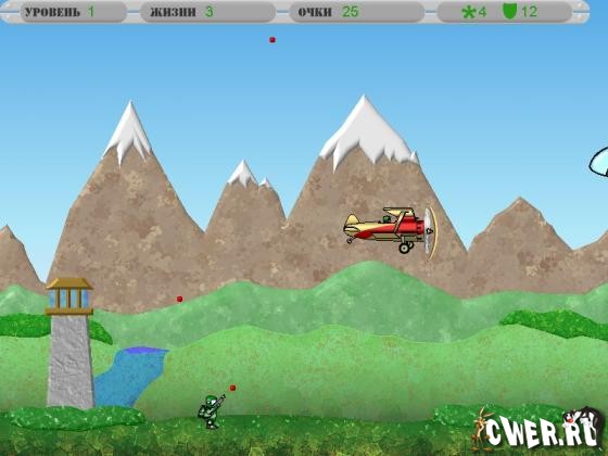 Маленькое независимое государство было захвачено вражеской эскадрой хорошо оснащенных самолетов и вертолетов. Они уже успели высадить своих десантников. Освободите страну, спасите ее от захватчиков. Меткость и ловкость Вам не помешают, так как атака ведется со всех сторон. И не забывайте собирать бонусы, которые попадаются по пути. Желаем Вам удачи в нелегком бою!
