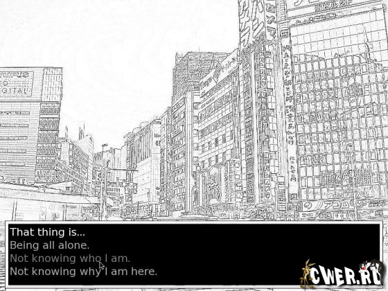 Чёрно-белый одинокий город, в котором нет никого кроме вас, а Вы... Ни человек, ни дух... Вы сами не знаете, что Вы... Да и не особо хотите знать... Вдруг вы вели ужасный образ жизни, а это ваше наказание - остаться одиноким... Без чувств, без желаний...