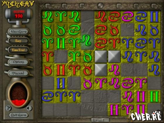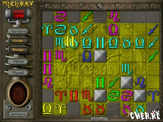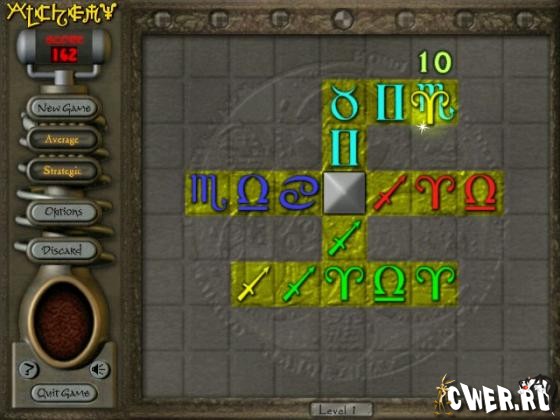 Забавная игра головоломка в которой необходимо складывать элементы алхимии в линию (вертикальная или горизонтальная). Сложность заключается в том что не все элементы можно расположить друг с другом по соседству.