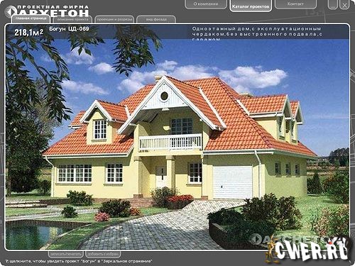 Проекты включают в себя: виды строения в 3-х измерениях, посадку строения на участке с размерами, поперечные поэтажные срезы здания с размерами и меблировкой, фотографии реализации проекта, точные размеры элементов здания с указанием типа и количества необходимых стройматериалов.