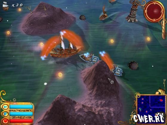 Вам предстоит стать капитаном боевого фрегата и отправиться в полное опасностей путешествие по бескрайной водной глади. Ваша цель – свержение с мирового престола главного пирата. Морской путь полон опасностей и неожиданностей: вам предстоит истреблять бесчисленные полчища противников, избегать вражеских атак, обходить стороной коварные ловушки и собирать золото, оружие и другие бонусы.