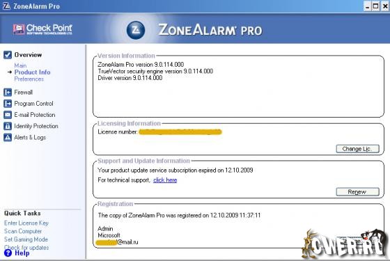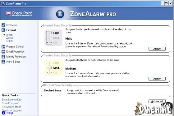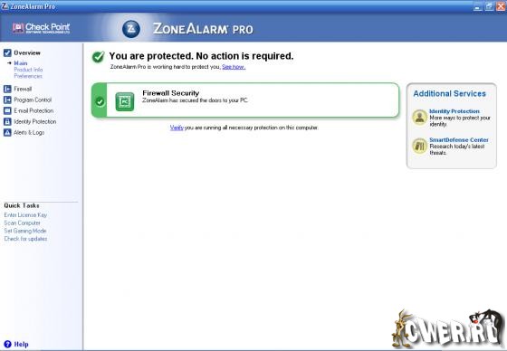 ZoneAlarm Pro - хорошо известный фаерволл, один из лучших в мире на сегодняшний день. Защищает компьютер от внешних угроз при работе в интернете и локальной сети. Блокирует атаку, не давая возможность получить доступ к компьютеру пользователя, имеет режим "стелс" невидимки в сети. Перекрывает выход в Интернет шпионским программам для пересылки личной информации. Защищает программы и операционную систему от вредоносного программного обеспечения и пр. Как необязательное дополнение в файерволл встроена антивирусная Anti-Spyware программы.