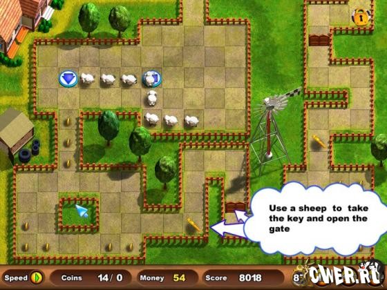 Фермер мечтает с помощью своих веселых и дружных овечек мечтает превратить захудалый хутор в богатое и процветающее хозяйство. Овечки собирают золото, а Вы указываете им путь. А ещё они водят грузовик и катер, обезвреживают бомбы и обладают потрясающим чувством юмора. Как хорошо в дождливые осенние будни перенестись в солнечное сельское лето! С новой игрой это стало возможно. Фермер мечтает превратить захудалый хутор в богатое и процветающее хозяйство, а веселые и дружные овечки помогают ему в этом нелегком деле. Они собирают золотые монетки в причудливых лабиринтах. А Вам остается лишь управлять их отважным отрядом!