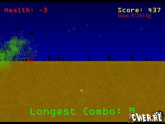 Простая, но очень затягивающая аркада. Вы управляете гигантским песчаным червем (похожим на Шаи-Хуллуда из “Дюны”) и должны обеспечивать его надлежащим пропитанием. В качестве еды, разумеется, выступают животные, люди и прочие сужества, путешествующие по поверхности земли.