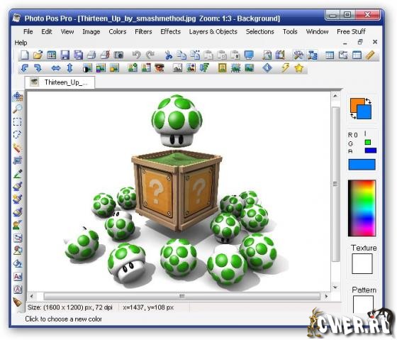 Профессиональная программа для редактирования графических изображений. Кроме стандартных средств работы с графикой, Photo Pos Pro предлагает огромное количество различных эффектов, инструментов, образцов градиентов и текстур, которые могут быть применены к вашим изображениям. Кроме того, вы можете создавать свои графические изображения, применяя к ним доступные эффекты, создавать слои, добавлять текст и т. д. Программа поддерживает практически все известные графические файлы и поддерживает работу с большим количеством сканеров и цифровых фотоаппаратов различных производителей.