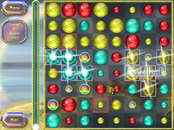 Приятная и расслабляющая игрушка в стиле match-3. Однако у нее есть своя изюминка. Вам нужно собирать по три шарика одного цвета, но разного размера. Шарики нужно как бы "вставлять" друг в друга по принципу матрешки. Двигаться можно как по горизонтали и вертикали, так и по диагонали.