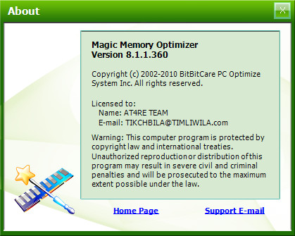Magic Memory Optimizer - предназначена для решения трудных и критических проблем возникающих в оперативной памяти компьютера. Память - самый драгоценный ресурс на вашем компьютере; если ее становится недостаточно, ваш компьютер начинает медленно работать, "зависать" или наступает крах, - падение системы. Сама же Windows не управляет памятью на должном уровне. Со временем, не имеет значения какой объем памяти у вас имеется, Windows постепенно для своей работы и прикладных программ отбирает остатки свободной памяти, что легко может привести вашу систему к краху. Magic Memory Optimizer решит все эти проблемы, высвобождая и восстанавливая беспечно растраченную системой память для ваших программ.