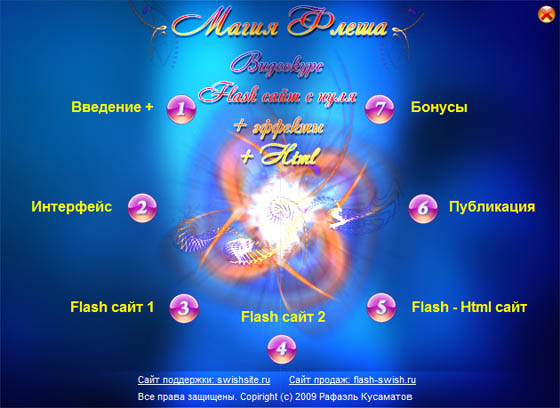 Содержание видеокурса "Flash сайт с нуля + эффекты + HTML":