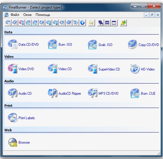 FinalBurner Pro - профессиональная версия пакета программ для записи CD, DVD и Blu-Ray дисков с различными данными, музыкой и видео. С помощью данной программы вы с легкостью сможете записать диск с данными, создать CD-аудио и DVD-видео диски, а также сделать ISO-образ диска. Для записи CD-аудио подходят многие музыкальные форматы, которые свободно импортируются при добавлении их в проект. Не менее полезной возможностью является импортирование множества видео файлов для создания своих DVD-видео дисков. Поддерживается работа со всеми распространенными типами носителей, включая двусторонние DVD и Blu-Ray диски. Программа обладает простым в использовании пользовательским интерфейсом с многоязычной поддержкой, включая поддержку русского языка.