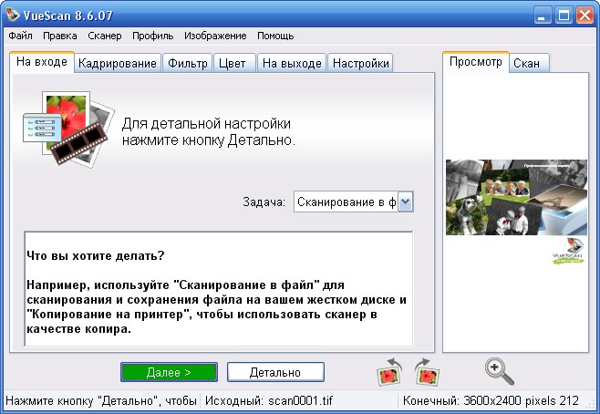 VueScan Pro - программа для работы со сканерами HP, Minolta, Nikon, Polaroid, Epson, Canon и другими. Может работать с внутренней глубиной цвета. VueScan поддерживает автоматическую и ручную настройку большинства параметров и пакетный режим сканирования. Поддерживается более 500 моделей сканеров с определенным перевесом в сторону слайд-сканеров — Nikon, Minolta, Polaroid, Microtek, Epson. Предусмотрено автоматическое удаление дефектов изображения за счет канала инфракрасного сканирования и многопроходное сканирование с последующим усреднением результата — для подавления собственных шумов сканера. Имеются фильтры подавления зерна, нерезкого маскирования и удаления паразитного оттенка оригинала. Есть средства ручной корректировки динамического диапазона и градационной характеристики (независимо по каналам R, G, B).