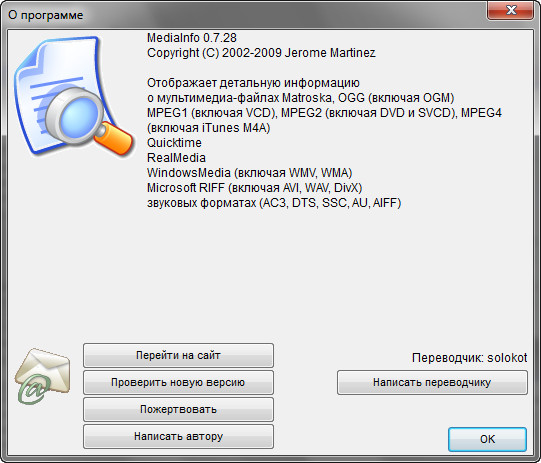 Скачать программу MediaInfo 0.7.28 Final x32 (1,83 МБ):