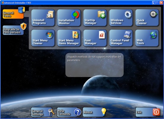 Advanced Uninstaller FREE - утилита для корректного и полного удаления программ с множеством дополнительных возможностей. Имеется Startup Manager, модуль управления программами, автоматически запускаемыми при загрузке системы, а также отображающий детальную информацию по каждой записи. Присутствует чистильщик реестра, оптимизатор системных ресурсов, дефрагментатор, модуль создания резервных копий и т.д. Также данная программа позволяет чистить кукисы, историю переходов и записи более, чем ста программ. Монитор инсталляций отслеживает изменения в системе и позволяет полностью «откатить» изменения, сделанные установленной программой. Имеется средство для оптимизации работы компьютера, путём грамотного управления запущенными сервисами.