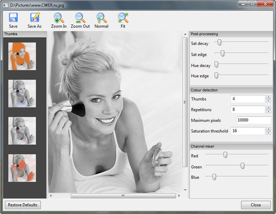 Tintii photo filter — программа и плагин для Adobe Photoshop, Elements и Corel Paint Shop Pro. Tintii это смарт-фильтр, который предназначен для обработки полно цветных фотографий в черно/белые, с возможностью выбора области определенного цвета, методом известным как цвето Popping или селективное окрашивание. Tintii умело группирует цветовой профиль фото в нескольких основных оттенков и в отличие от обычных методов, нет необходимости отслеживать вокруг план объектов, применять маски, или ограничиваться жестким набором цветов и других параметров — все, что вам нужно сделать, это выбрать, какие из этих тонов сохранить, а какие обесцветить.