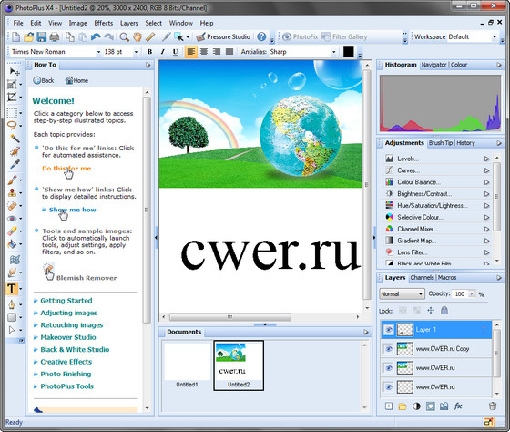 Serif PhotoPlus - профессиональное программное решение для редактирования цифровых фотографий. Эта программа позволяет работать с фотографиями и другими графическими файлами на профессиональной основе. PhotoPlus поможет откорректировать и улучшить качество цифровых фотографий, уменьшить или увеличить их размер, отрегулировать яркость, контрастность, цветовую насыщенность и многое другое. Независимо от того, что вы хотите сделать с вашими фотографиями - удалить царапины с портретной фотографии, отрегулировать экспозицию фотографии или уровни цветов, отретушировать старые фотографии, импортировать документы Adobe Photoshop, или же наложить различные эффекты на цифровые фотографии - PhotoPlus все что вам нужно для достижения высококачественного результата.