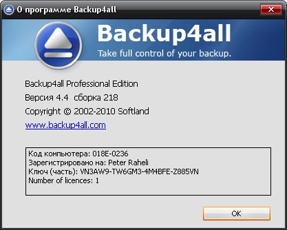 Скачать программу Backup4All Professional 4.4.218 (17,8 МБ):