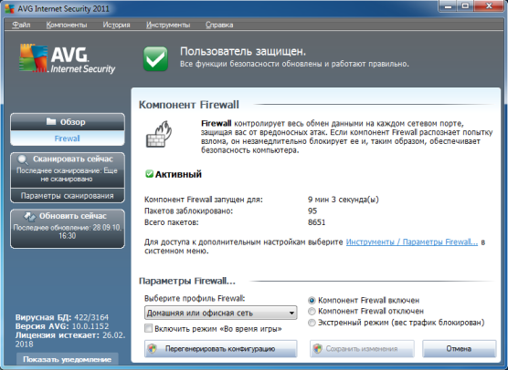 - Контроль за сетевыми соединениями. При помощи встроенного файрволла AVG проверяет все входящие и исходящие запросы на соединение с компьютером, предотвращает сетевые атаки на компьютер, и сетевую активность программ-троянов.