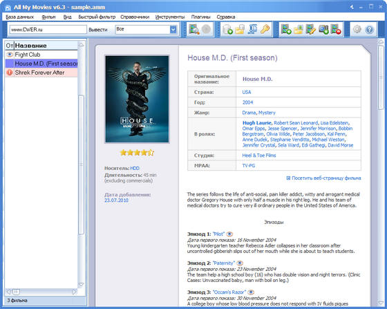 - Наглядное и удобное представление вашей коллекции фильмов. Вид карточки фильма легко изменяется благодаря поддержке HTML-шаблонов.