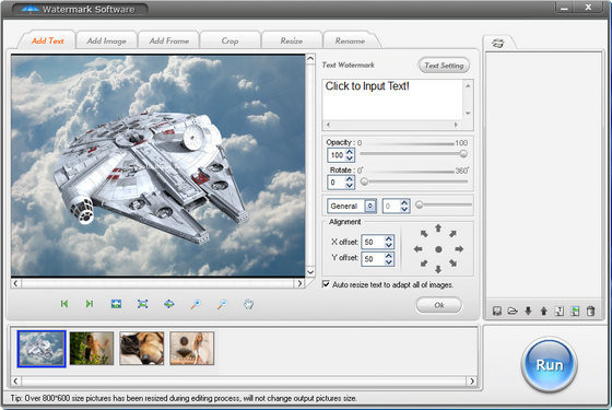 Watermark Software is a professional program for protect photo's copyright, add text watermark, image watermark, logo, sign to digital photo for protect without unauthorized using. But it very easy to use, just 3 steps can help you watermarked 500 pictures, and all process less than 1 minute. In current version, it has 150 watermark materials, and it will be more. Watermark software is not only a watermarking tool, it also can help you add pretty frames to photos, crop images, resize photo, etc, all the function support batch.