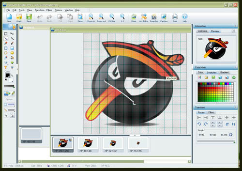 Программа для создания и редактирования иконок. Утилита позволяет импортировать и экспортировать иконки, содержит значительное число художественных инструментов для создания и редактирования иконок стандартных и специальных размеров. Можно создавать значки любых размеров, с глубиной цвета вплоть до 32-bit True Color, создавать полупрозрачные иконки, экспортировать картинки в Photoshop, редактировать анимационные GIF файлы.