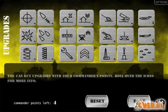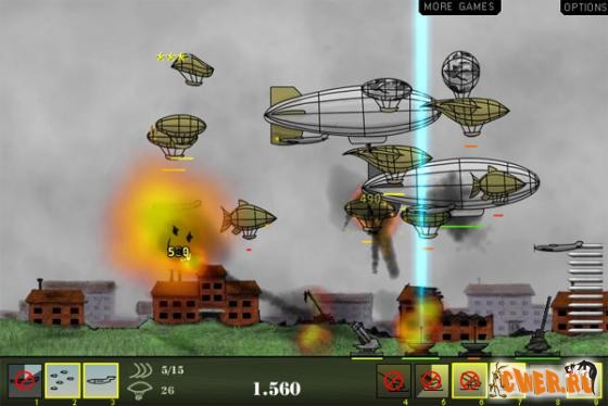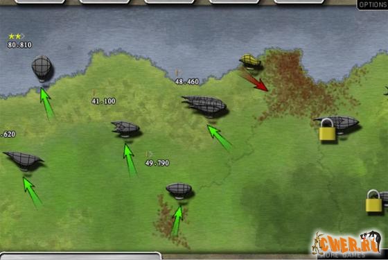 И снова флеш-стрелялка! Обороняем территорию от дирижаблей противника. Всё начинается с одной пушки, а заканчивается... Несколько уровней сложности, большое количество игровых уровней и возможностей апгрейда вооружения. Можно вызывать подмогу(вплоть до камикадзе) и сохранять игру.