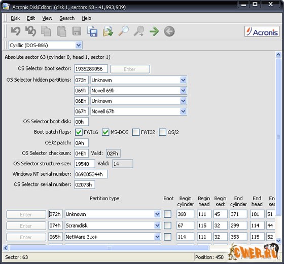 Acronis Disk Editor предоставляет возможность редактировать содержимое секторов жесткого диска, представляя его в наиболее удобном виде, обладает простыми и эффективными средствами навигации по диску и поиска, сохранения содержимого секторов в файле и чтения из файла.