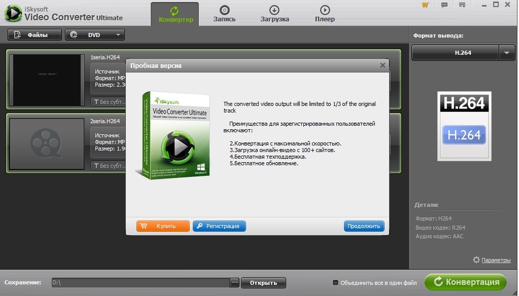 Скачать программу iSkysoft Video Converter Ultimate 5.3.1.0 + русификатор (39,84 МБ):