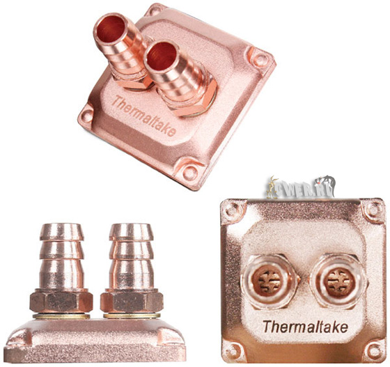 Изделие весом 95,5 г изготовлено полностью из меди и имеет габариты 40 х 40 х 8,6 мм. Новинка снабжена универсальным креплением Enhanced Universal Clip, оборудована парой специальных коннекторов Rotational Hose Connectors, совместима со шлангами диаметром 3/8 дюйма и построена с применением передовой технологии Brazing Technology, полностью исключающей возможность утечки жидкости и значительно продлевающий срок службы. При этом разработчики настоятельно рекомендуют использовать их детище в составе таких фирменных систем жидкостного охлаждения, как представители серии Thermaltake BigWater Series, включая модели BigWater 735 и BigWater 745.