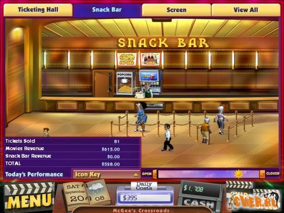 Нанимайте работников, выбирайте фильмы для показа в своих кинотеатрах, улучшайте закусочные, устанавливайте цены на билеты, заработайте деньги, чтобы покупать новинки синематографа! Все это Вы найдете во второй части игры Cinema Tycoon 2: Movie Mania.