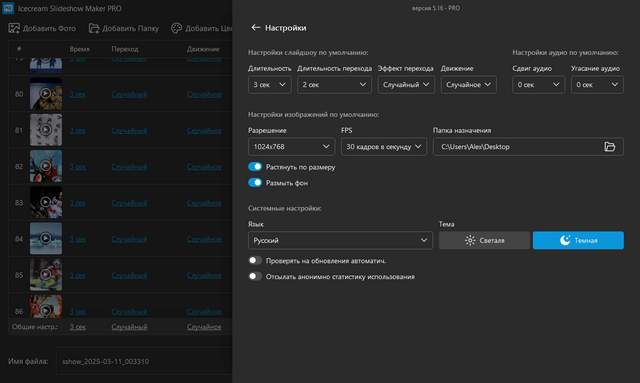 - Удобное управление процессом. Позволяет настроить длительность отображения слайда, выбрать эффект перехода и его продолжительность