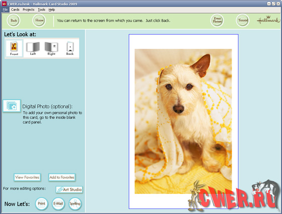 Hallmark Card Studio - это пакет для создания открыток, один из лучших среди программ данного рода. Он с легкостью поможет вам создать самые красивые открытки для всех случаев жизни. Эта программа содержит множество различных картинок, фонов и эксклюзивных шрифтов. А также здесь есть календарь для записи и хранения в нем важных для вас дат, так что вы никогда не забудете поздравить дорогого вам человека. В пакет также входит возможность послать по E-mail сделанную вами открытку в сопровождении голосового поздравления. Помимо того что пакет содержит несколько тысяч картинок и проектов вам предоставляется возможность добавить свои картинки и фотографии. И в добавок ко всему этому есть также функция просмотра открыток в 3D и возможность печати созданных открыток.