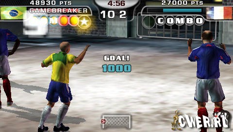 Спортивный беспредел на улицах города, и вы - в самом центре событий! В игре заместо травяного поля асфальт и стены, через которые можно отдавать пас. Это футбол в котором нет судьи и действует одно правило, кто забил больше всего голов противнику тот, и победил. Большое разнообразие финтов помогут Вам постоянно создать опасные моменты. В игре собраны лучшие игроки сборных команд и просто знаменитые игроки!