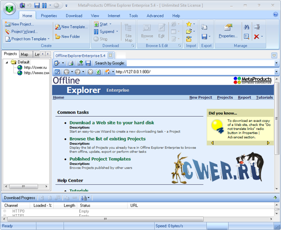 Offline Explorer - мощнейшая программа, позволяющая скачивать как отдельные файлы, так и целые веб-сайты (HTTP, FTP и HTTPS) на жесткий диск для их последующего офф-лайн просмотра как на отдельном компьютере, так и пользователями целой локальной сети. Используя Offline Explorer Enterprise, вы можете одновременно качать неограниченное количество выбранных вами Web, FTP и HTTPS сайтов для дальнейшей работы с ними. Offline Explorer Enterprise содержит веб-утилиты для легкого и быстрого редактирования, просмотра или поиска скачиваемых страниц во встроенном веб-браузере.