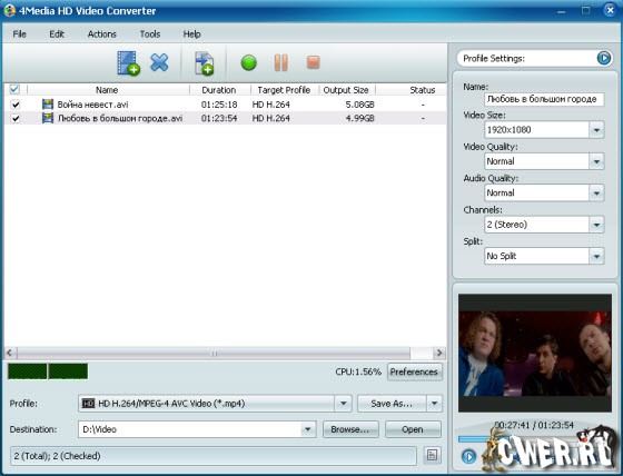 4Media HD Video Converter - это новейшее программное обеспечение для любителей высоко-качественного видео с простым и интуитивно понятным интерфейсом. Конвертер поддерживает кодирование и декодирование всех High-Definition Video HD, включая форматы AVI, H.264/AVC, MKV, AVCHD, HD TS MPEG4, MPEG2 TS HD, WMV HD, HD Quick Time...
