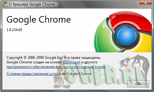 Скачать Google Chrome 1.0.154.65 Stable (8,3 МБ):