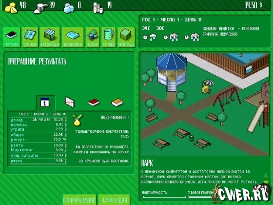Проверьте свое мастерство предпринимателя: сможете ли вы развить маленький торговый лоток в целую бизнес-империю? Выберите подходящее место для розничной торговли прохладительными напитками, изобретите лучший рецепт лимонада и установите цену, а также не забудьте просмотреть последний прогноз погоды.