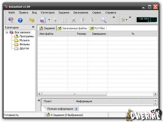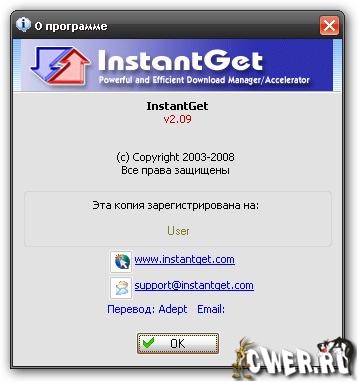 InstantGet — это небольшой, но мощный и удобный менеджер загрузок, позволяющий скачивать файлы по протоколам HTTP и FTP. Программа обладает приятным и удобным интерфейсом, поддерживает докачку, может скачать файлы несколькими потоками, позволяет ускорить загрузку, обладает большим количеством настроек, имеется встроенный поиск, интегрируется в оболочку, отслеживает появление ссылок в буфере обмена, автоматическая сортировка загруженных файлов согласно их расширениям, поддерживает функцию drag and drop, умеет работать через прокси и многое другое.