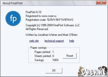 - Отображение количества сэкономленной при помощи FinePrint бумаги