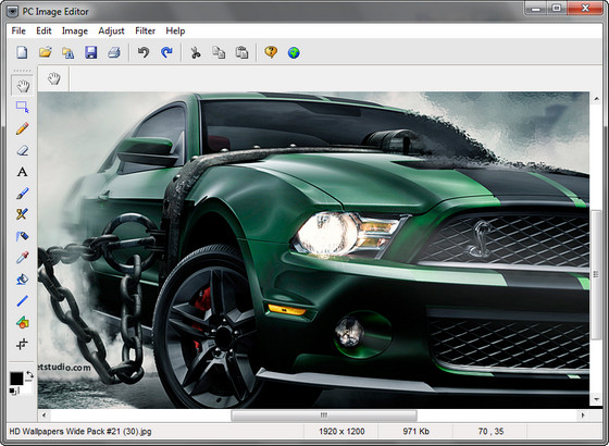 PC Image Editor - графический редактор со множеством функций профессиональных продуктов. Вы можете редактировать изображения самых разнообразных форматов (BMP, GIF, JPG, TIFF, PCX, PNG, TGA, J2K, WMF, EMF, RAS). Программа содержит невероятно дружественный интерфейс, дающий Вам возможность работать интуитивно. Наряду с обычным набором операций с файлами, такими как Копировать, Переместить, Удалить и Переименовать Вы можете использовать такие функции как корректировка цвета в фотографиях, применение фильтров, типа Оттенок, Негатив, Расцветка, Пастеризация, Мозаика, Разворот, Холст, Вращение и Преобразование, Перспектива и Перекос, Изображение пятна, Настройка четкости изображения, Изменение размеров изображения, Установка изображения в качестве обоев рабочего стола. Дополнительно, программа содержит широкий выбор кистей и красящих опции.