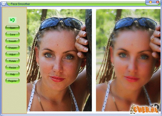 Face Smoother - это графический редактор, который при помощи нажатия одной кнопки поможет преобразить ваши фотографии устраняя различные недостатки ( веснушки, прыщи, морщины, родинки и другие дефекты) помогая сделать из любой девушки фотомодель. В программе так же имеется возможность изменения размера вашей фотографии и плавная регулировка яркости , контрастности и цвета.