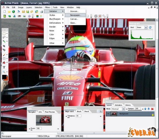 Мощный графический редактор с поддержкой слоев, фильтров, отмены и прочее. Поддержка более 30 графических форматов, альфа-канала, различных инструментов для рисования.