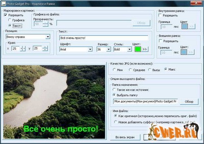 Работать с Photo Frame легко и просто, достаточно открыть графический файл и выбрать рамку в одной из категорий. Также Вы можете: вращать, перебрасывать или изменять размер фото; корректировать образ и текстуру; добавлять фрейм, ClipArt и тень на фото; создавать прямоугольный фрейм с непрозрачным цветом или текстурой вне исходного изображения; устанавливать качество сжатия JPEG; сохранять созданное в формате GIF, BMP, JPEG и PNG; распечатывать фото и т.д.