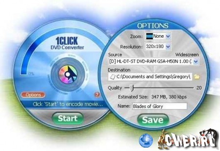 Конвертировать Ваши любимые фильмы и другие видео ролики формата DVD в формат плеера iPod всего одним щелчком. В отличие от других программ со сложными настройками, длительным и сложным процессом конвертирования, программа 1Click DVD To IPOD очень удобна. Видео или кинофильм программа находит сама автоматически и не требует от вас предварительного просмотра, вам остается выбрать нужный кинофильм или видео ролик, который вы хотите получить на вашем плеере Ipod. Всего лишь кликните по кнопке Start и получайте сконвертированный видео файл, пригодный для Ipod.