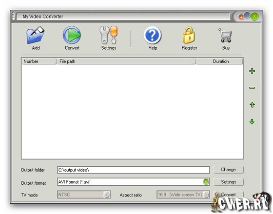 My Video Converter - видео конвертер, позволяющий преобразовывать видео файлы между форматами: AVI/DIVX/XVID/DIV, MPEG/MPG/DAT, WMV/ASF/ASX, RM/RMVB, MOV/QT, 3GP/3G2, MP4/M4V, FLV. Умеет работать с видео файлами больших размеров (более 2GB) и обрабатывать группы файлов.