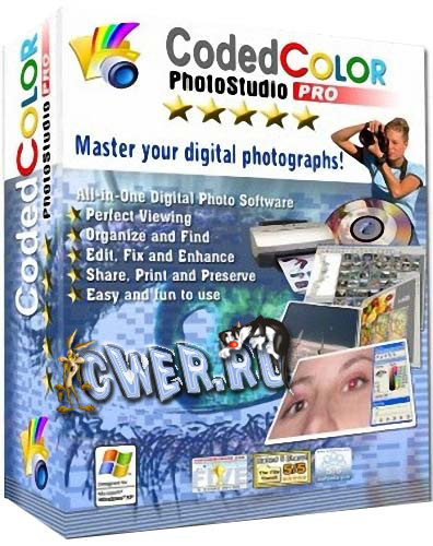 CodedColor PhotoStudio Pro - профессиональная версия фото просмотрщика и редактора, предназначенного для организации, редактирования, сравнения, корректирования, сортирования и печати цифровых изображений. Также программа позволяет изменять размер изображений, накладывать водяные знаки, аннотировать изображения, редактировать EXIF и IPTC данные цифровых фотографий и многое другое. Вы сможете переименовывать несколько изображений, удалять царапины, создавать панорамные фотографии, конвертировать RAW фотографии, отправлять изображения через Skype, накладывать водяные знаки на фотографии, корректировать цвета, запускать слайдшоу, конвертировать и корректировать JPEG изображения в пакетном режиме, открывать картинки и папки изображений из Проводника, генерировать веб-альбомы на HTML и сжимать JPG файлы в размерах. Все операции, проводимые в данной программе обрабатываются в интерфейсе, который поддерживает вкладки.