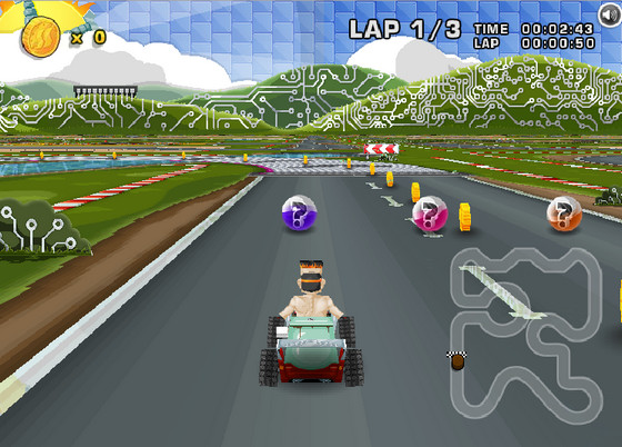 3D симулятор кольцевых гонок на картингах. Есть одиночные гонки, гонка на время и чемпионат, разные персонажи и уровни подготовки. Игра тормозит на слабых компьютерах!