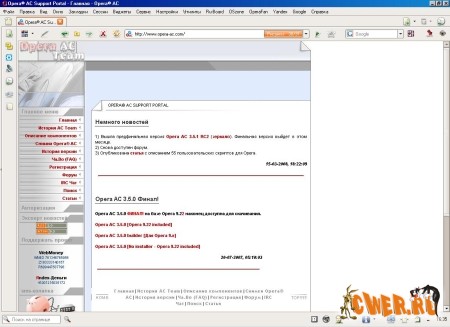 Opera AC - это более функциональная, более красивая, более удобная версия популярного браузера. Количество опций очень велико, но все подвластно Вашему выбору, Все изменения опциональны и их сочетание задается Вами!